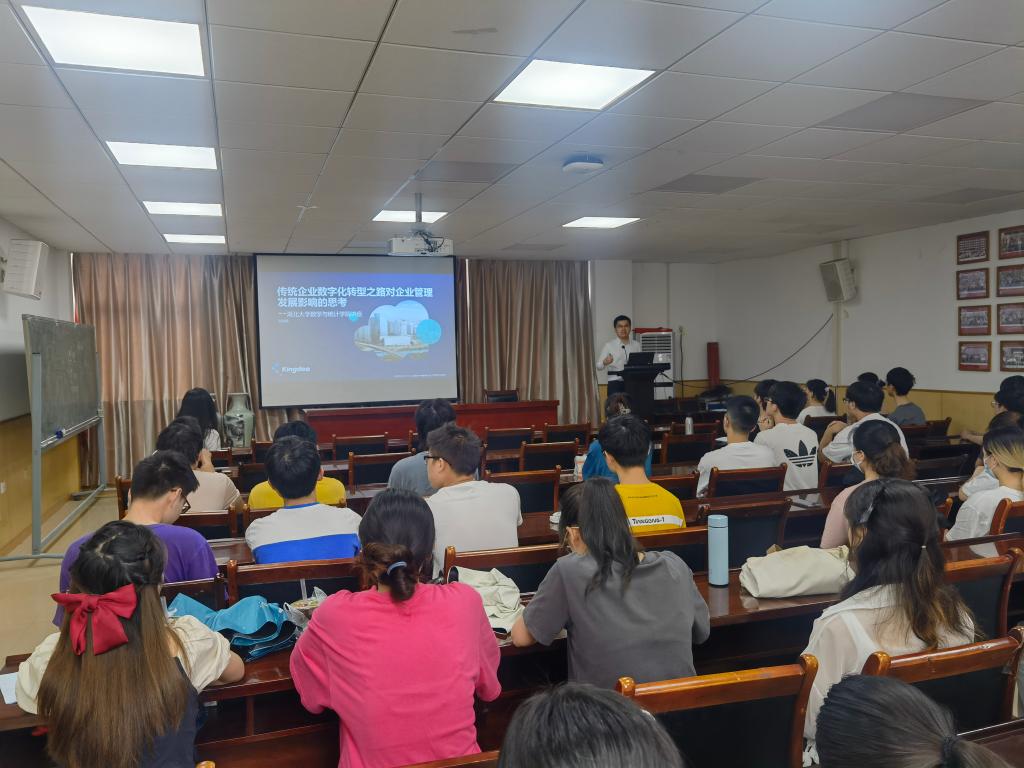 仪式结束后,金蝶精一信息科技服务有限公司副总经理、顾问公司经理张喆敏还为员工们带来《传统企业数字化转型之路对企业管理发展影响的思考》的主题讲座,让大家充分认识企业数字化转型的目的与意义,以及企业管理未来发展的现实要求,引起员工们积极思考与讨论,现场反响热烈。