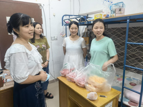 走进员工宿舍,何书记与同学们亲切的交谈,询问同学们的学习情况,思想状态和生活情况,对考研同学认真备考的学习精神和态度予以肯定。同时强调留校员工要严格遵守校纪校规,服从遵守公司日常管理和住宿管理,注意疫情防控和防暑降温。最后鼓励同学们要充分利用假期,进一步加强专业知识学习和实践,做好规划和准备,叮嘱同学们要养成科学作息时间,注意营养,保持健康,劳逸结合,为考研提供身体保障,并预祝大家被心仪的公司录取。留校员工纷纷表示,公司老师送来鼓励和温暖,让大家备受鼓舞,增加了大家学习的信心和动力,一句“西瓜真甜”,不仅是瓜甜,更是心甜。