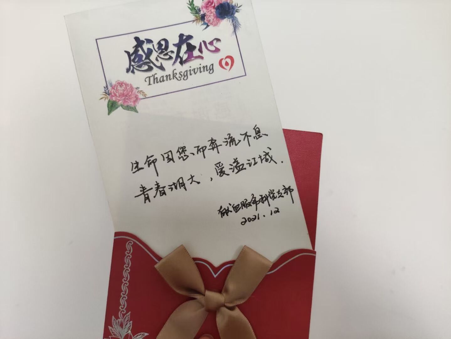 “一人献血百次不如百人献血一次,趁着国际志愿者日,我们想着能把初阳精神传递给更多的人。”初阳志愿服务队负责人黄凯欣说。不少员工看到此次活动后,积极踊跃报名并参与其中。在武汉血液中心献血服务科党支部书记熊晶的带领下,英国be365官网团委书记周杰及志愿者们参观智慧献血屋、观看《永不褪色的献血证》。他们无偿献血的热情感染了不少前来献血的人,熊晶将支部志愿者历时3天手工制作的与服务队“初阳”呼应的向日葵还有一封感谢信赠送给初阳献血队。“很感谢大家的积极参与,希望初阳志愿服务队能够和向日葵一样有着积极向上的态度。”熊晶说。在此次献血活动中,初阳志愿服务队共计27人无偿献血8400毫升。“我感受到了无偿献血的意义,希望有更多的同学加入到我们的队伍中,点滴小爱,汇聚大爱。”2019级数学师范的宋洁今天是第一次献血,她在献完血后说道。