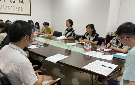 会议伊始,员工工作办公室辅导员陈慧就阳逻回迁、老生报到、新生迎新、就业工作以及开学后疫情防控、员工安全教育管理、重点员工关注等8月份重点员工工作做了详细布置。