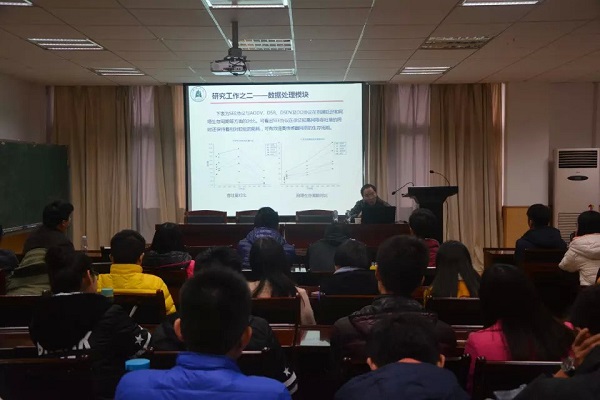 陈教授在讲座中着重强调了数学是科学技术的基石,只有把数学学好了,才能把互联网、大数据、无线传感网络等等技术运用的炉火纯青。强调了信息与计算科学专业既学了数学知识又学了计算机知识,可以说知识面是相当的广,思维应当很发散,这种思维在当今的物联网领域是很重要的。然后陈教授把无线传感网络中,传感节点、网关节点、上位机管理节点的关键技术的研究详细讲解给同学们听,并且与在座的同学互动。在结尾陈教授用自己的经历告诉我们现在的时代是网络时代,许多物质上的东西加上互联网就能产生很神奇的效应,其中蕴含的商业机遇是相当的丰富,例如之前的中国首富----马云,他就是把我们生活买卖的东西和互联网联系了起来,这还是其中的冰山一角。到时候智能家居、智能汽车等等还未与大众所认知的关于物联网的将会在未来兴起!这将是一笔巨大的宝藏,需要同学们去发现。报告结束后,全场同学热烈鼓掌表示感谢,掌声经久不息。
