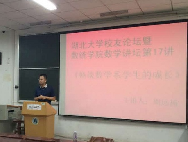9月27日下午,数学系93级员工、华中师范大学国家杰出青年科学基金获得者周远扬教授应邀返校,为​英国be365官网师生做题为《畅谈数学系员工的成长成才》的讲座。