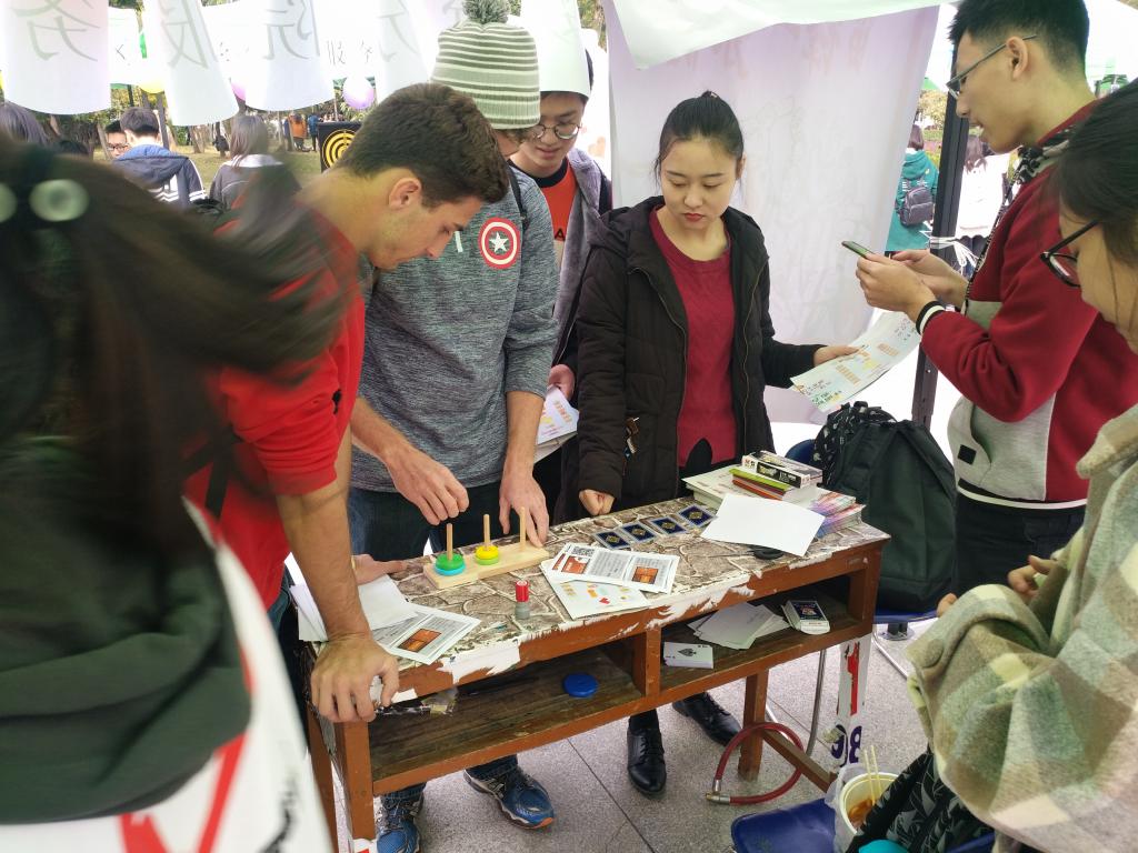 据悉,本次“数乐汇”活动共有40名工作人员、设4个展板、10个活动点,其中4个展板包括数学情书、数学世纪之谜、社团以及数乐汇介绍,10个活动点包括9个游戏点1个领奖处。游戏项目包括抓硬币、汉诺塔、五子棋、、魔方、数独、、五个皇后、二十四点等共9个数学特色游戏。活动可以从任意环节开始,集齐9项获得一等奖,6-8项二等奖,3-5项一等奖,另设参与奖,共四个奖项。奖品从生活日用品到饰品文具再到休闲零食发放数目达180余项,全校师生游戏量参与达900人次。
