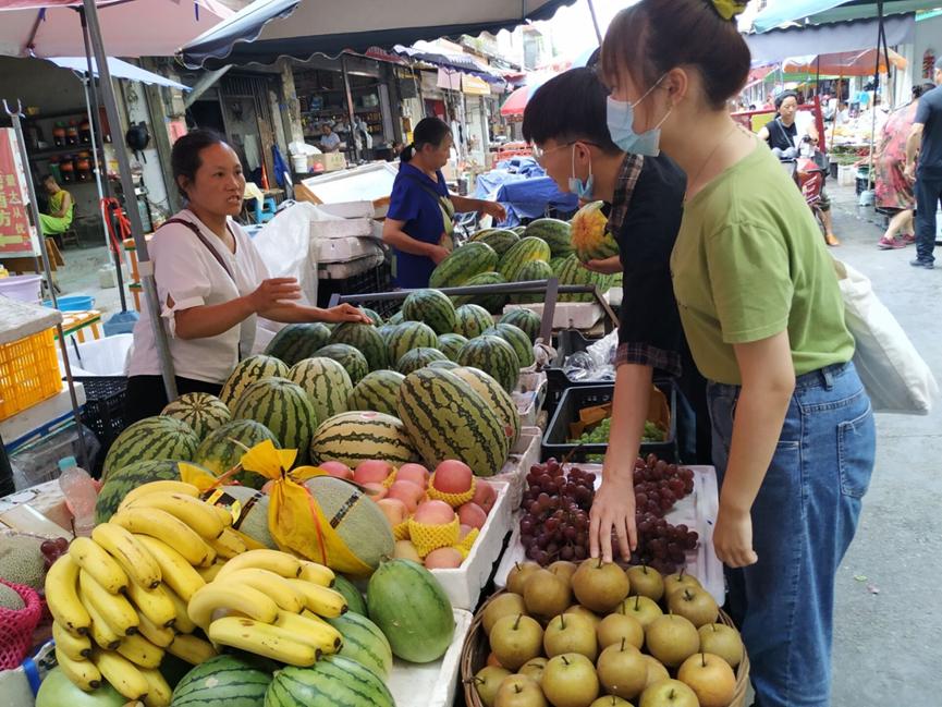 图为团队在河东农贸市场与摊主交流